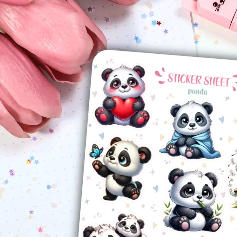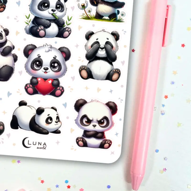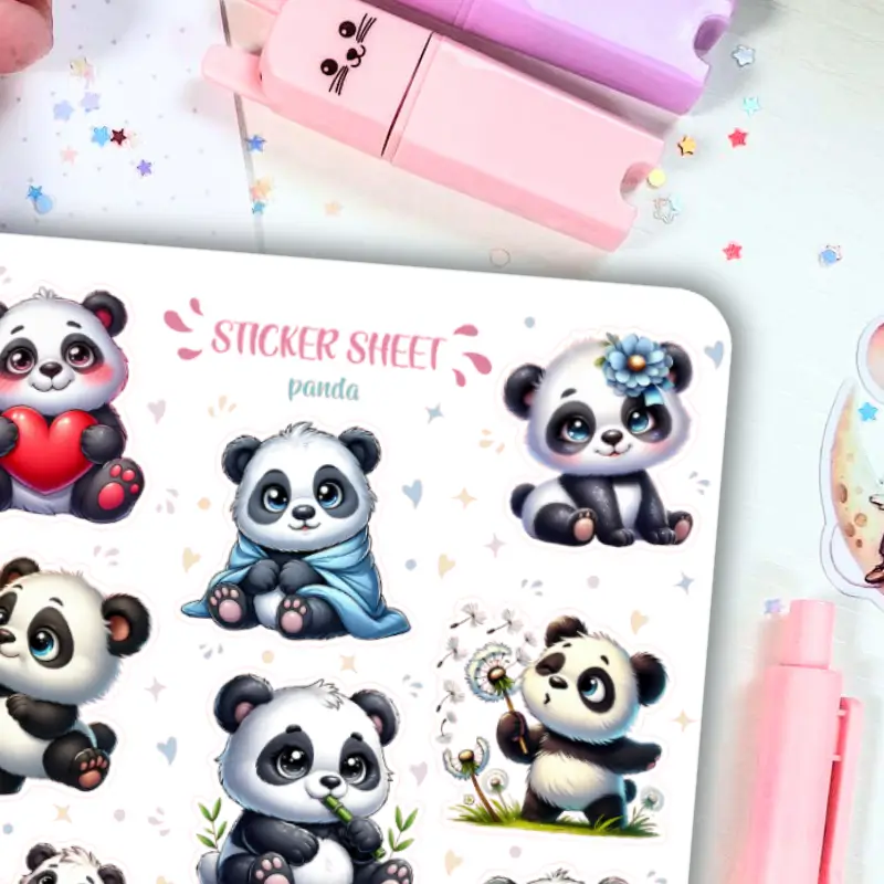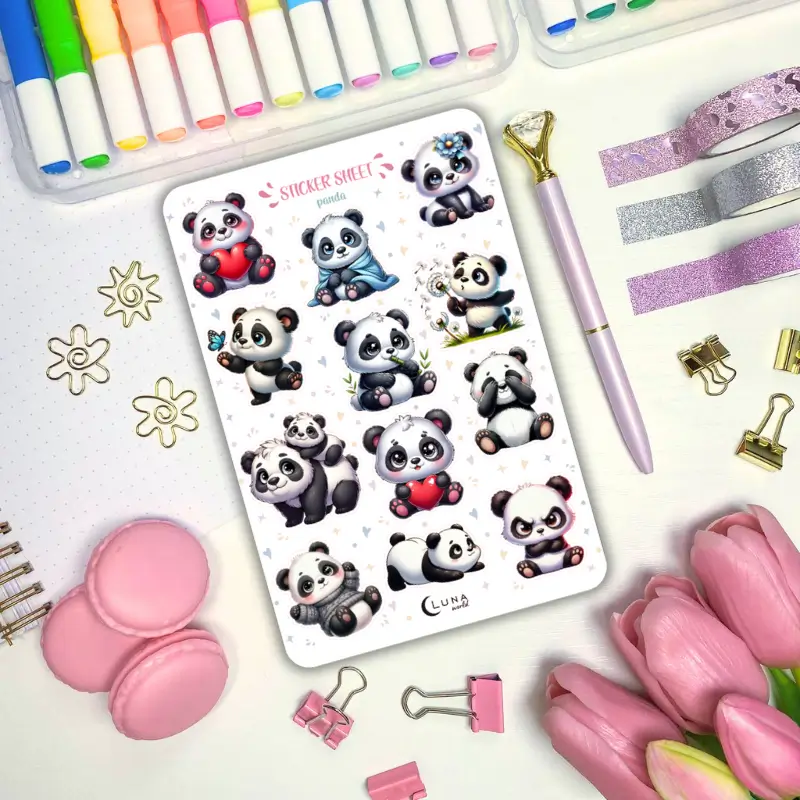 Jeśli lubisz delikatne, kolorowe naklejki to zestaw stworzony z myślą o Tobie. Arkusz naklejek z pandą ozdobi Twój planner, dziennik mola książkowego, bullet journal czy zeszyt. Arkusz naklejek zawiera 12 sztuk papierowych naklejek. Stwórz ze zwykłego zeszytu idealny planner dostosowany do Twoich potrzeb.