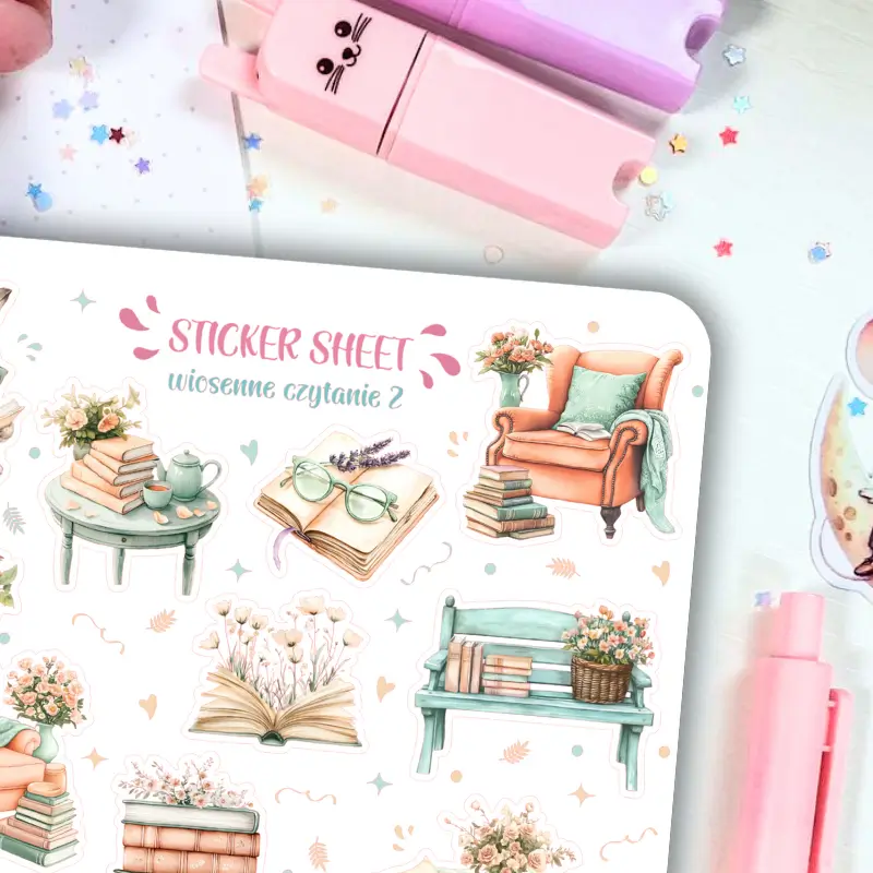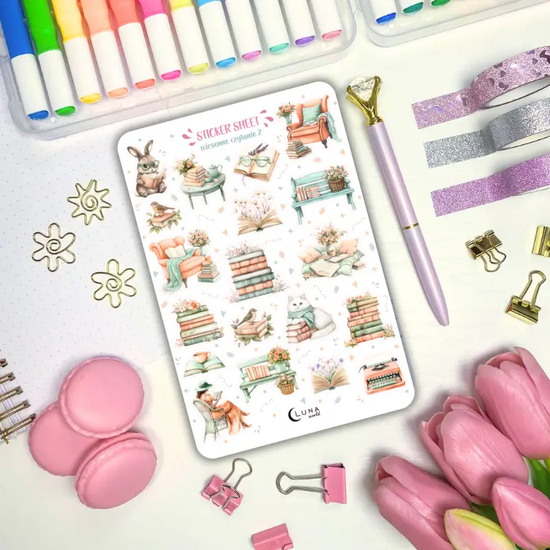 Jeśli lubisz delikatne, kolorowe naklejki to zestaw stworzony z myślą o Tobie. Arkusz naklejek ozdobi Twój planner, dziennik mola książkowego, bullet journal czy zeszyt. Arkusz naklejek zawiera 19 sztuk papierowych naklejek. Stwórz ze zwykłego zeszytu idealny planner dostosowany do Twoich potrzeb.