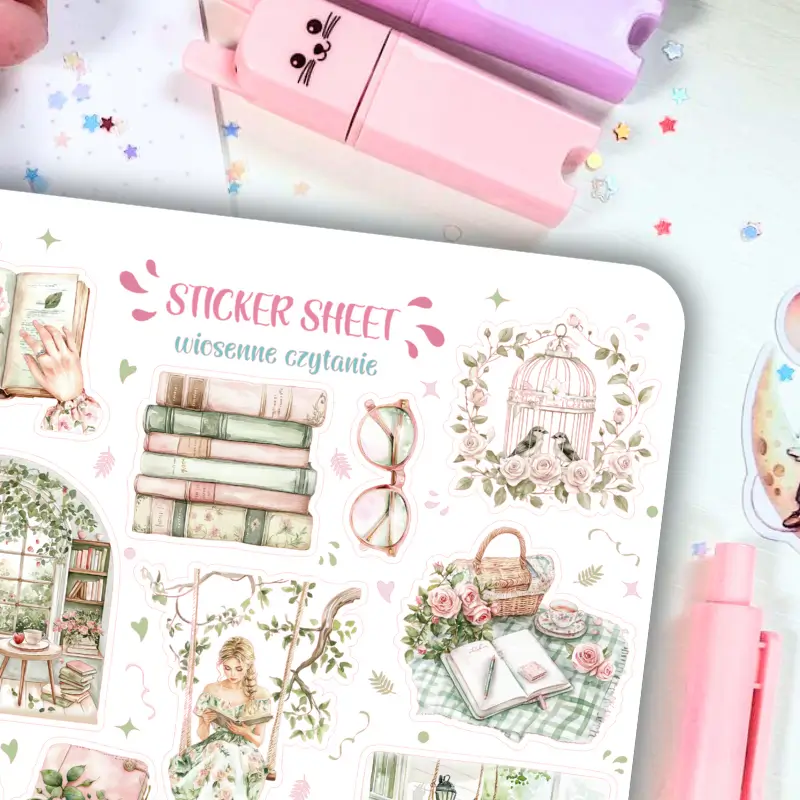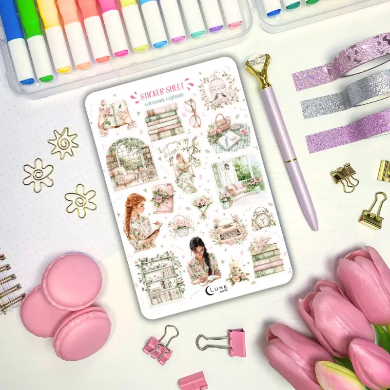 Jeśli lubisz delikatne, kolorowe naklejki to zestaw stworzony z myślą o Tobie. Arkusz naklejek ozdobi Twój planner, dziennik mola książkowego, bullet journal czy zeszyt. Arkusz naklejek zawiera 18 sztuk papierowych naklejek. Stwórz ze zwykłego zeszytu idealny planner dostosowany do Twoich potrzeb.