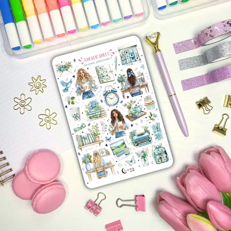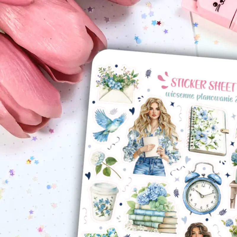 Jeśli lubisz delikatne, pastelowe kolorowe naklejki to zestaw stworzony z myślą o Tobie. Arkusz naklejek akwarelowych z wiosennym motywem ozdobi Twój planner, bullet journal czy zeszyt. Arkusz naklejek zawiera 29 sztuk papierowych naklejek.