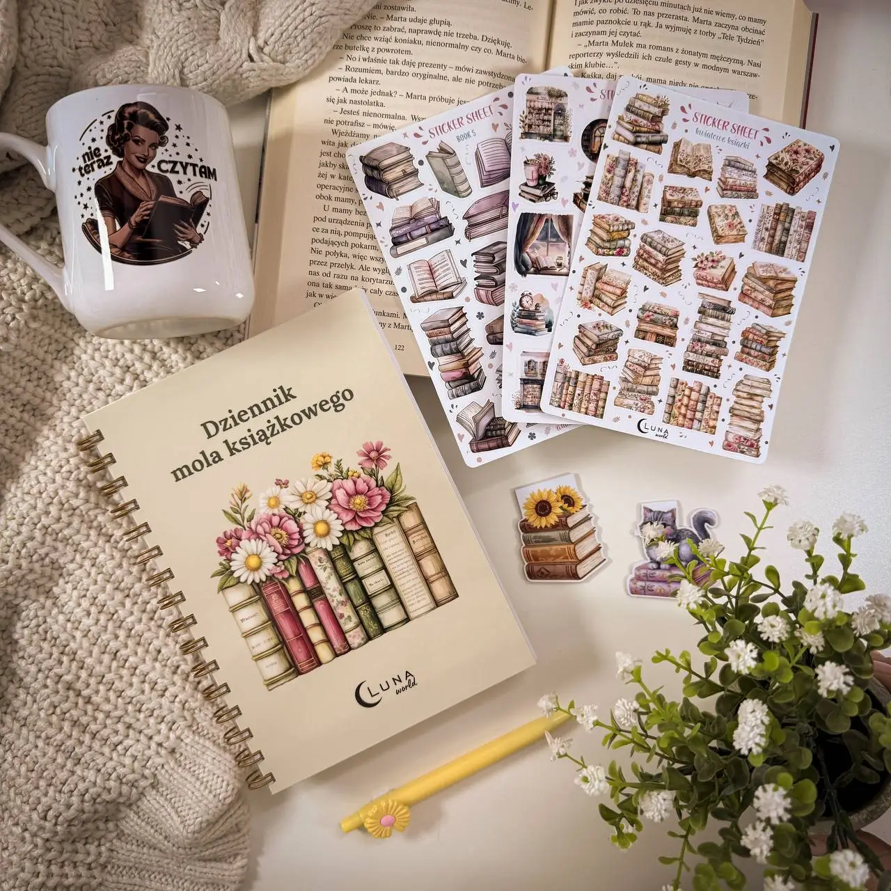 Tak — to jeden z najbezpieczniejszych prezentów, bo jest praktyczny: dziennik mola książkowego + dodatki, które od razu zachęcają do używania. Jeśli chcesz „bardziej prezentowo”, wybierz zestaw Wieczór z Książką (kubek + więcej dodatków)